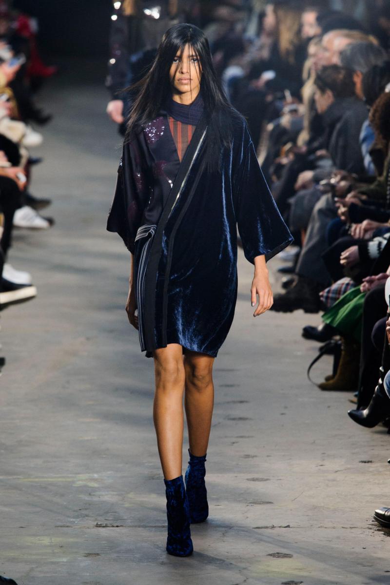 Al parecer, la tela no tiene ganas de irse esta temporada. El diseñador Phillip Lim le dio al terciopelo un fresco giro y lo combinó con una tela de seda impresa ¡Precioso!