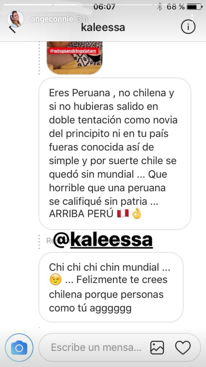 La seguidora de la ex chica reality le recalcó en distintos mensajes que no tenía por qué lamentar la derrota de Chile puesto que según ella Ángela tendría nacionalidad peruana.