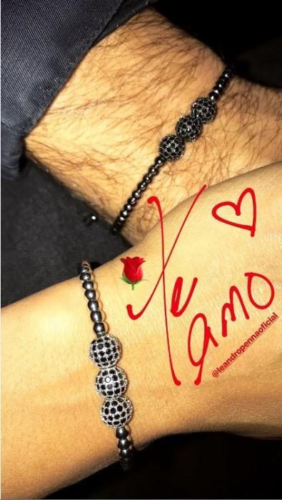 Ahora decidieron sellar su compromiso de una forma muy romántica, que Leandro mismo compartió en sus historias de Instagram. La pareja usa ahora la misma pulsera, que simboliza esta unión.