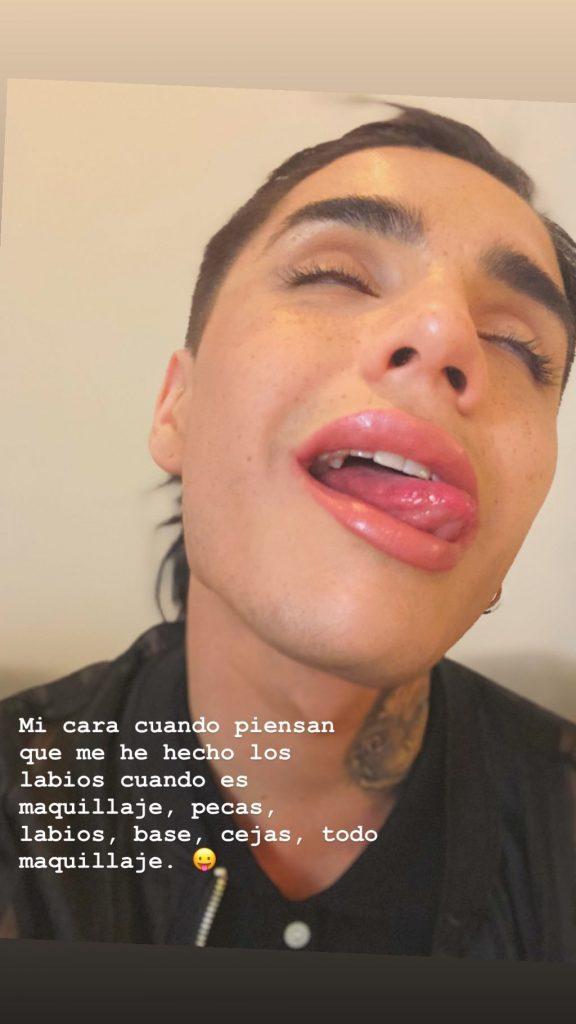Resultó que todo era efecto del maquillaje. Sí, como lees. El hijo de DJ Méndez asegura que su cara permanece intacta. “Mi cara cuando piensan que me he hecho algo, cuando es maquillaje, pecas, labios, base, cejas, todo maquillaje”, escribió.