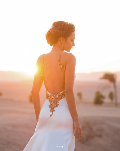 Dicho vestido, con el que la chica reality posó posteriormente para fotos profesionales, pertenece a la chilena Mika Herrera, cuya especialidad son los vestidos de novia.
