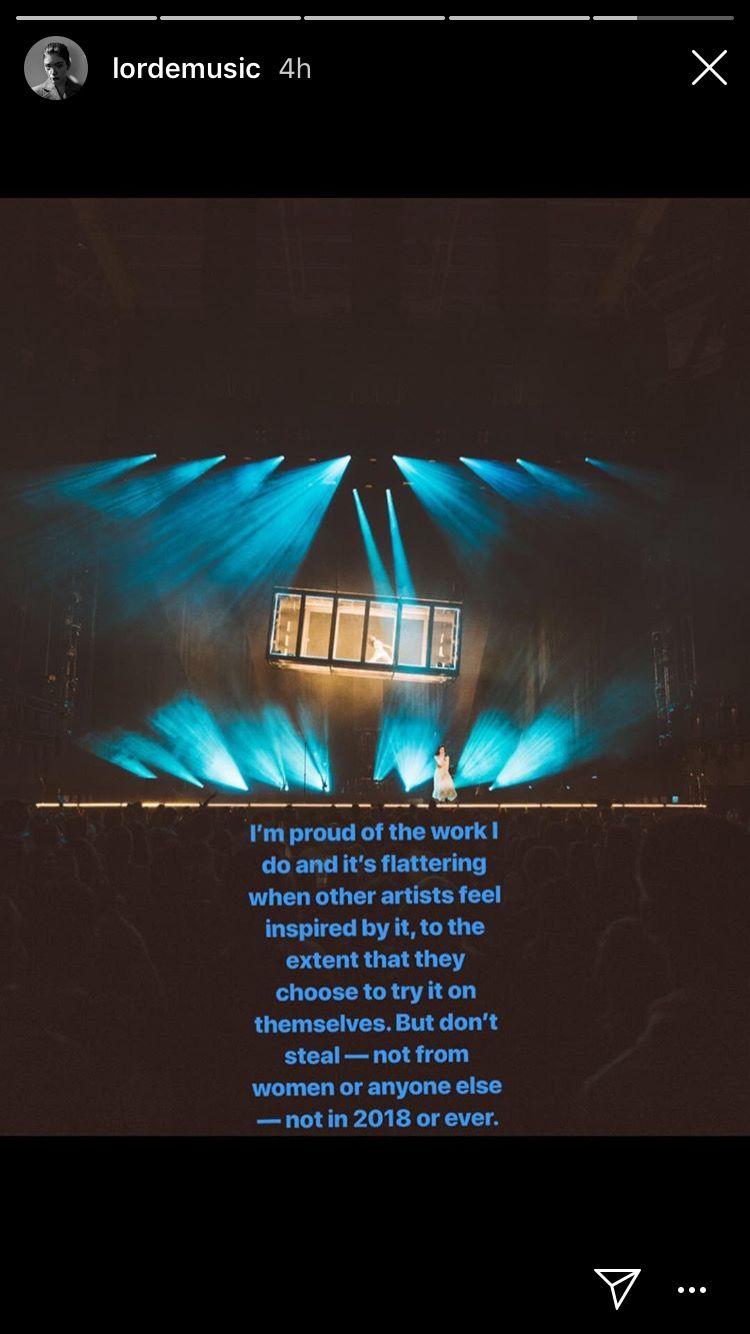 Luego y con una arroba le mandó un mensaje directo a ambos músicos. “Estoy orgullosa del trabajo que hago y es halagador que otros artistas se sientan inspirados por él, hasta el punto que decidan usarlo por sí mismos. Pero no robes – no a una mujer ni a nadie – no en 2018 ni nunca”, escribió.