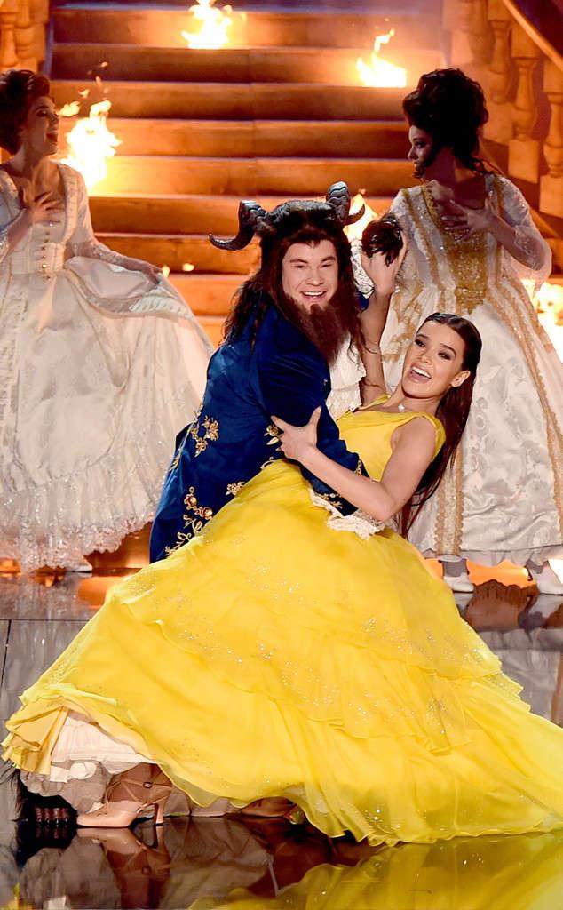 Como número de apertura, El conductor del progra,a Adam Devine, y la cantante Hailee Steinfeld se convirtieron en “La Bella y la Bestia”, agregándole un poco de humor a la película que se robó a taquilla este año.