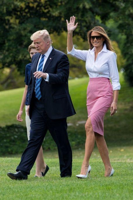 9.- Viajando a celebrar el 4 de julio: una falda tubo más una ajustada camisa fueron la combinación idónea para Melania.