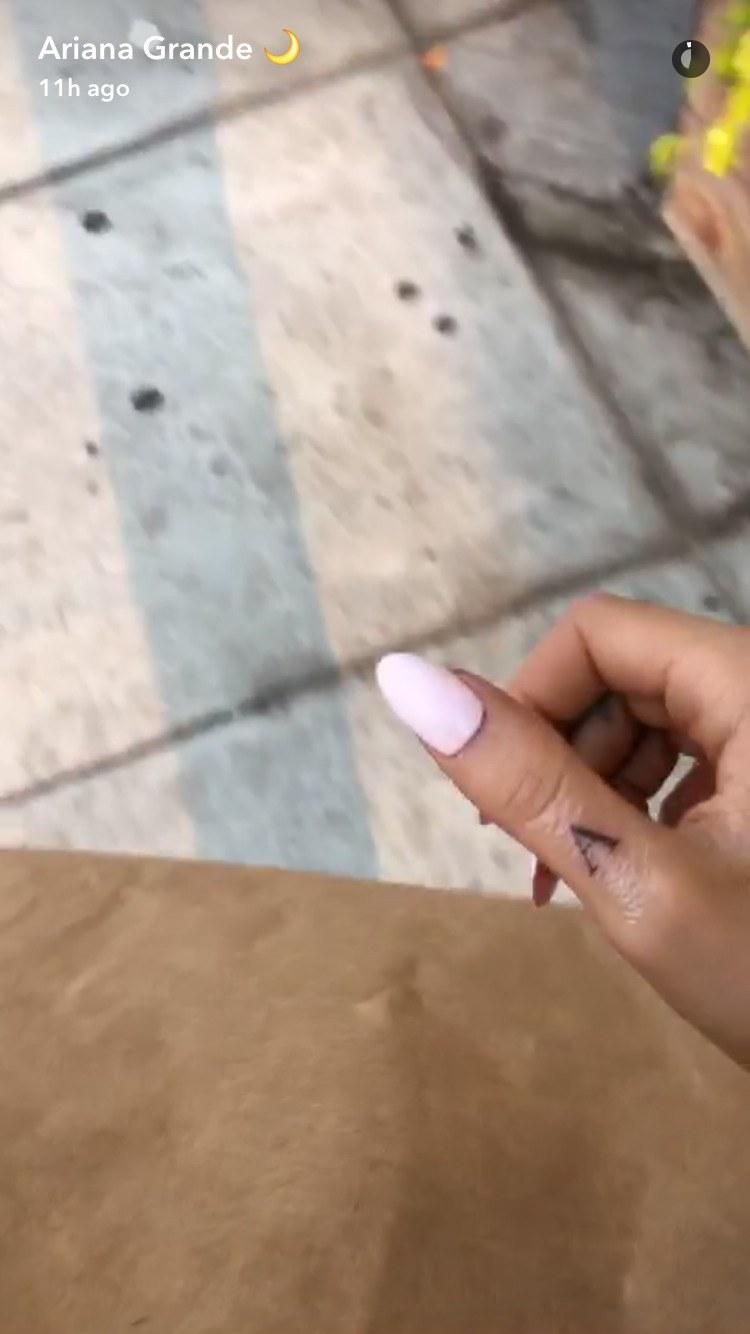 El segundo es el símbolo de venus en el dedo medio de la mano izquierda y representa el sexo femenino. Ariana los publicó en su Instagram, pero casi son imperceptibles.