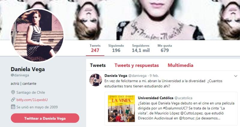 “Emociona que desde chile se haga visible para todo el mundo el talento y la valentía de @danielavegam. Merecido ultra merecido”, escribió el intérprete, quien mencionó en su mensaje a la modelo colombiana Daniela Vega Mendoza y no a la artista nacional (@danivega).