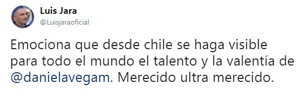 Luis Jara comete “fail” al felicitar a Daniela Vega por Twitter