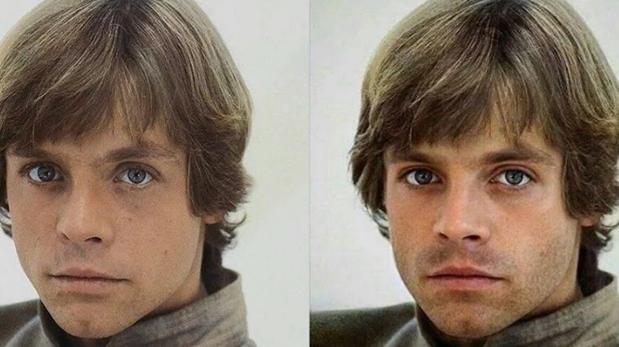 Al lado izquierdo está el Luke original y, en el derecho, Sebastian. Aunque la foto de Stan haya sido creada con Photoshop -cortaron su cara y la pusieron en la clásica foto de Skywalker-, el parecido es innegable.