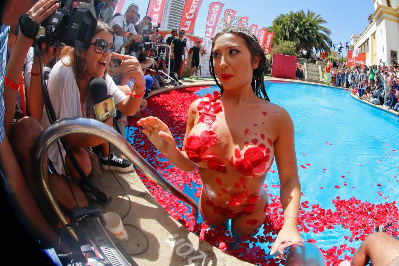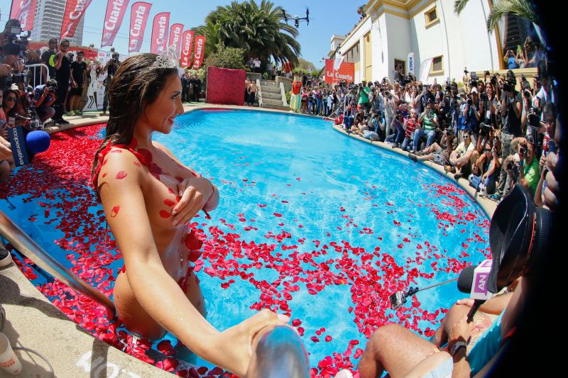 La nueva Reina de Viña llegó cubierta de pétalos.