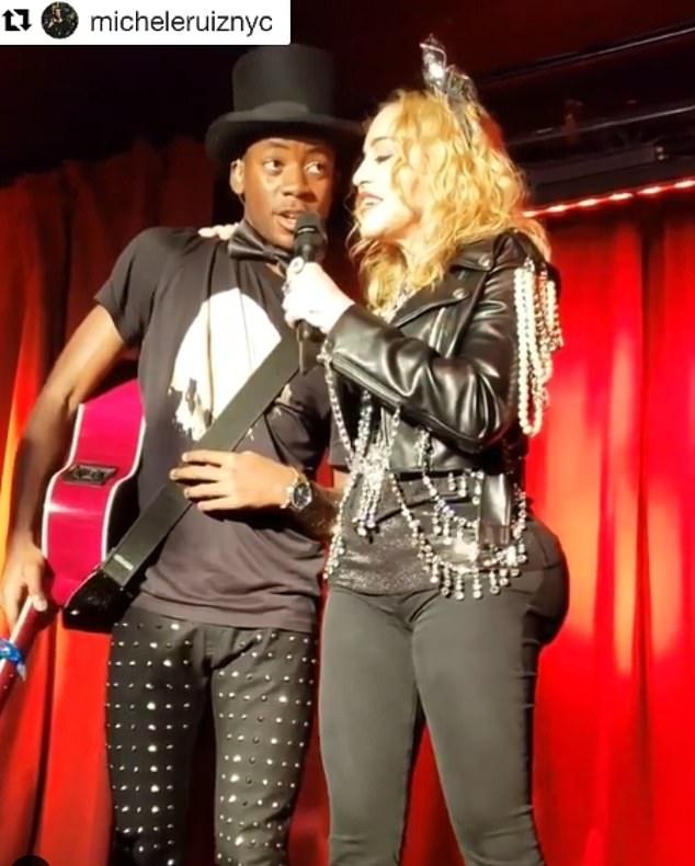 La celebridad fue vista previó al abrazo de Año Nuevo en un bar gay donde cantó junto a su hijo dos canciones sobre el escenario, cautivando a los presentes.