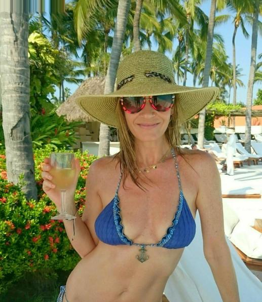 Con una imagen en un pequeño bikini azul adornado con un ancla en miniatura, deslumbró a sus seguidores con su perfecta figura, que no ha perdido a pesar de sus varios embarazos.