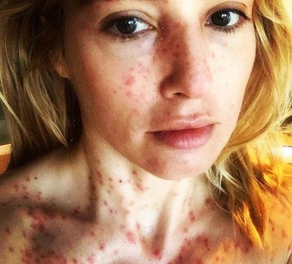 La actriz reveló una imagen sin filtro sobre las consecuencias de esta condición dermatológica.