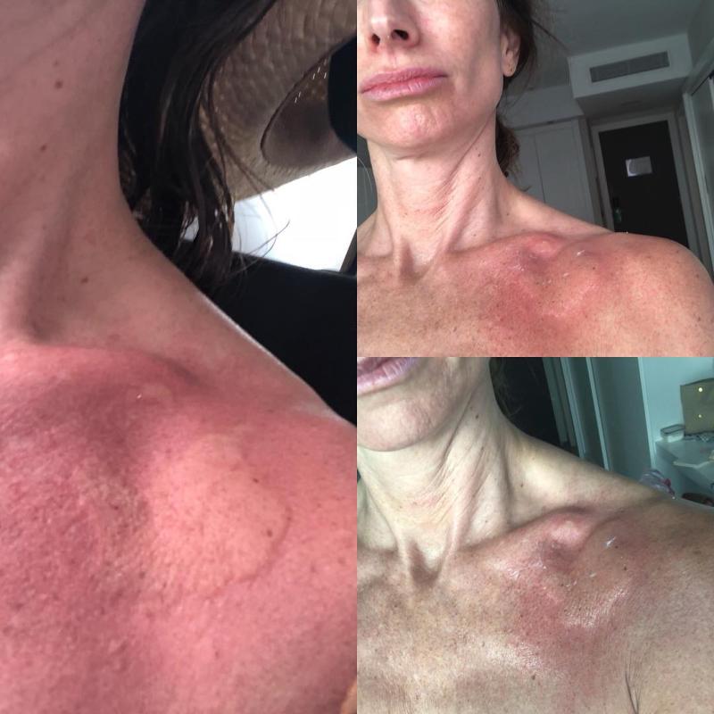 En fotos la actriz muestra la hinchazón y lo rojizo que se encuentra la zona de su cuello y además aconsejó a sus fieles. "Si le gusta nadar mar adentro tiene q apechugar... picá de medusa", expresó.