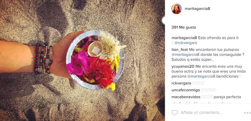 Al parecer se reunirán más adelante, pero por ahora, viven su amor a distancia. Por eso los seguidores de Marita se enternecieron al ver que la actriz subió una foto de una ofrenda hecha de flores, y se la envió directamente a su pololo. “Esta ofrenda es para ti”. Escribió junto a la foto de su mano sosteniendo un coco lleno de flores y etiquetando a Vergara.