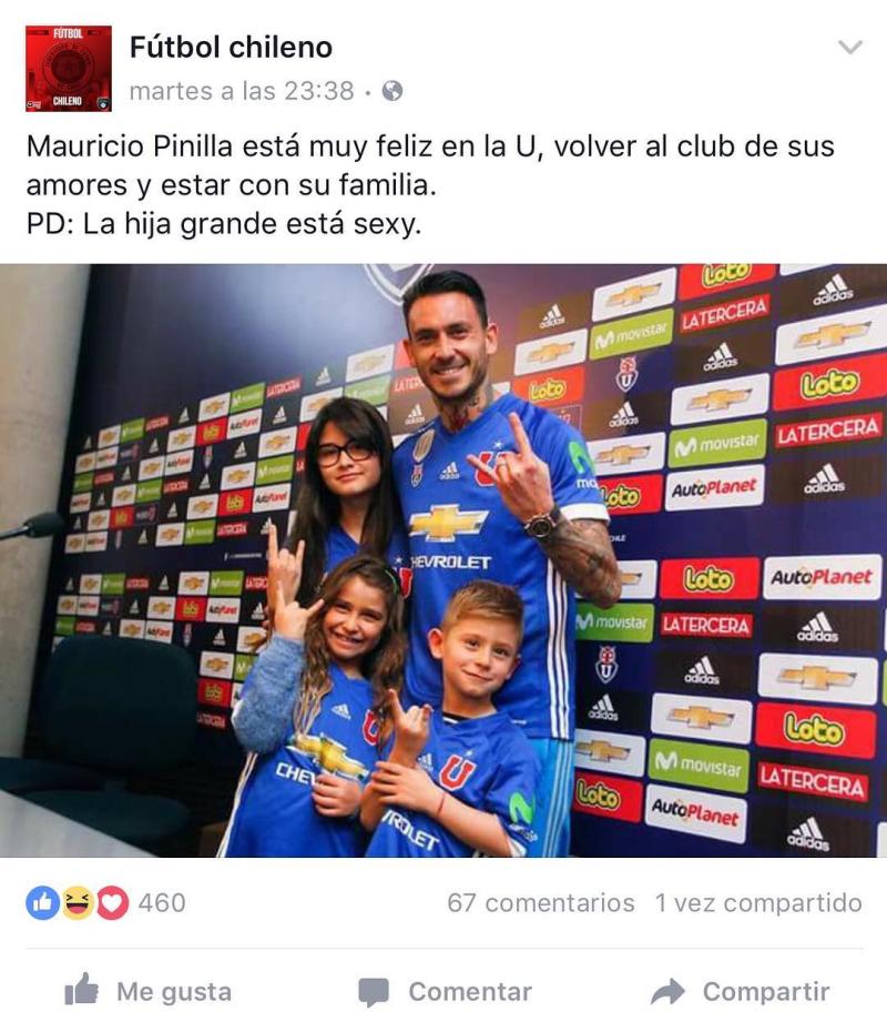 Mauricio Pinilla enfureció luego de ver en una página de Facebook la noticia de su ingreso a Universidad de Chile con un texto bastante particular, relacionado a su hija de 11 años de edad.