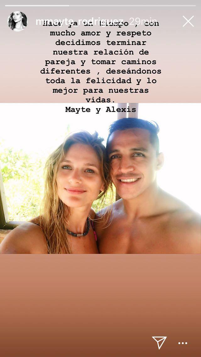 Este miércoles Mayte Rodríguez y Alexis Sánchez dieron la mala noticia a sus seguidores: la relación se terminó.