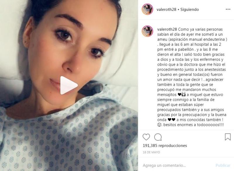 El 17 de mayo Valentina Roth ingresó al pabellón para someterse a un AMEU (aspiración manual endouterina) para retirar los restos de un aborto espontáneo que sufrió la bailarina, pero que quedó retenido en su útero.