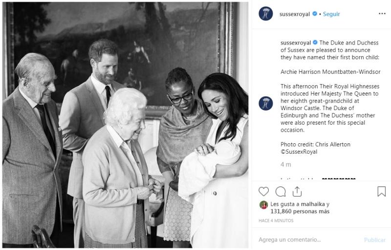 Luego de presentar a su primer hijo al mundo, Meghan Markle y el príncipe Harry revelan a través de su cuenta de Instagram el nombre del bebé real.