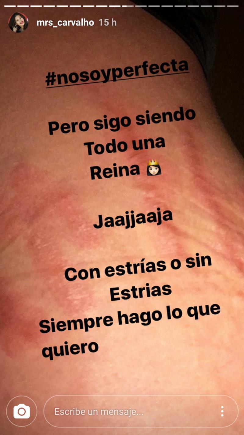 La modelo escribió en las imágenes un mensaje claro y convincente: “No soy perfecta, pero sigo siendo una reina”, “Con estrías o sin estrías siempre hago lo que quiero”