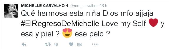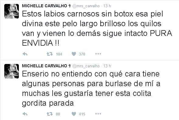 Michelle Carvalho se vio ayer en televisión y también se conectó a Twitter, para conocer las impresiones dela gente, responder elogios y ataques.