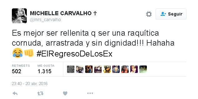 Dicho comentario hizo reaccionar a Michelle, quien trató de “raquítica” y “cornuda” a la trasandina.