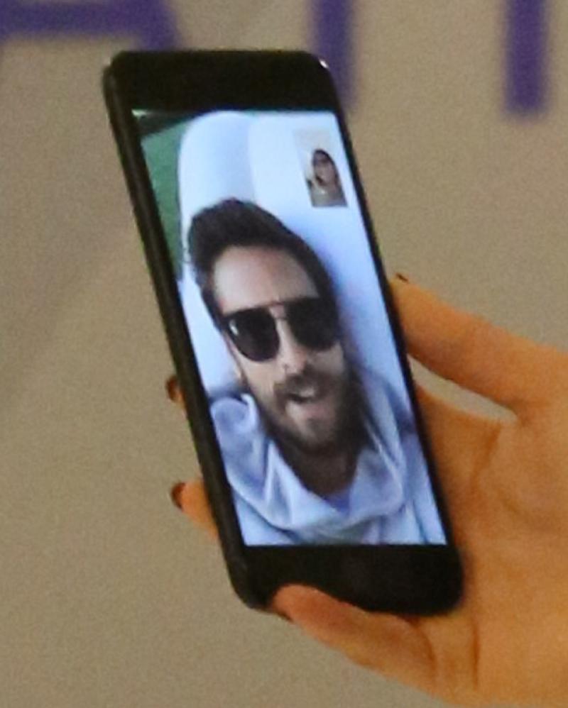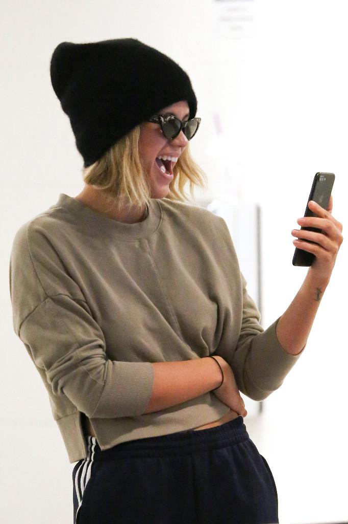 Paparazzis dieron con la rubia quien permanecía feliz teniendo una conversación vía FaceTime.