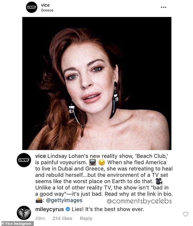 Miley Cyrus defiende a muerte el nuevo reality show de Lindsay Lohan