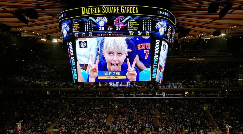 Además de ser la nueva jurado en The Voice, y estrenar nuevo look platinado y con chasquilla, Miley Cyrus lució su nuevo anillo de compromiso en un juego de básquetbol en Nueva York.