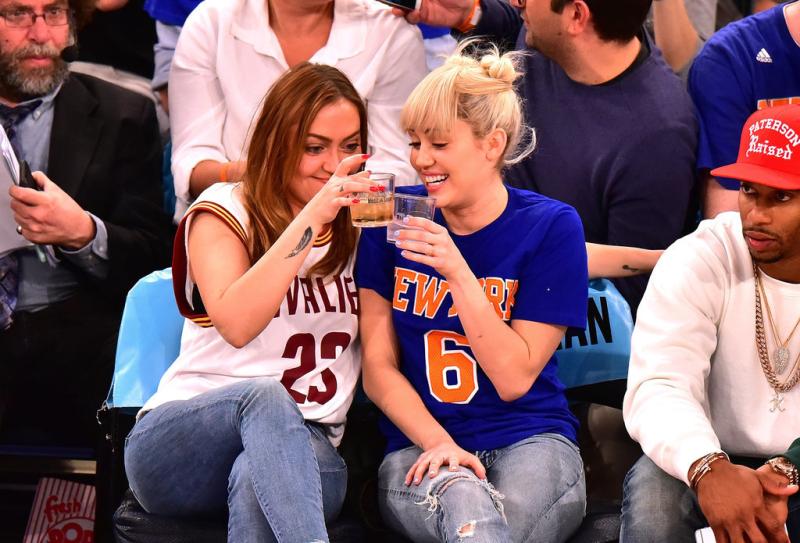 Y aunque el galán de “Los Juegos Del Hambre” no estaba ahí, las hermanas Cyrus disfrutaron del juego, se tomaron unos tragos y se sacaron selfies con los jugadores.