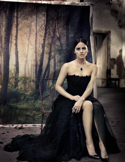 Emma Watson se vistió de negro, oscureció su pelo y posó elegante para Vogue Italia, una sesión oscura, pero sofisticada y llamativa.