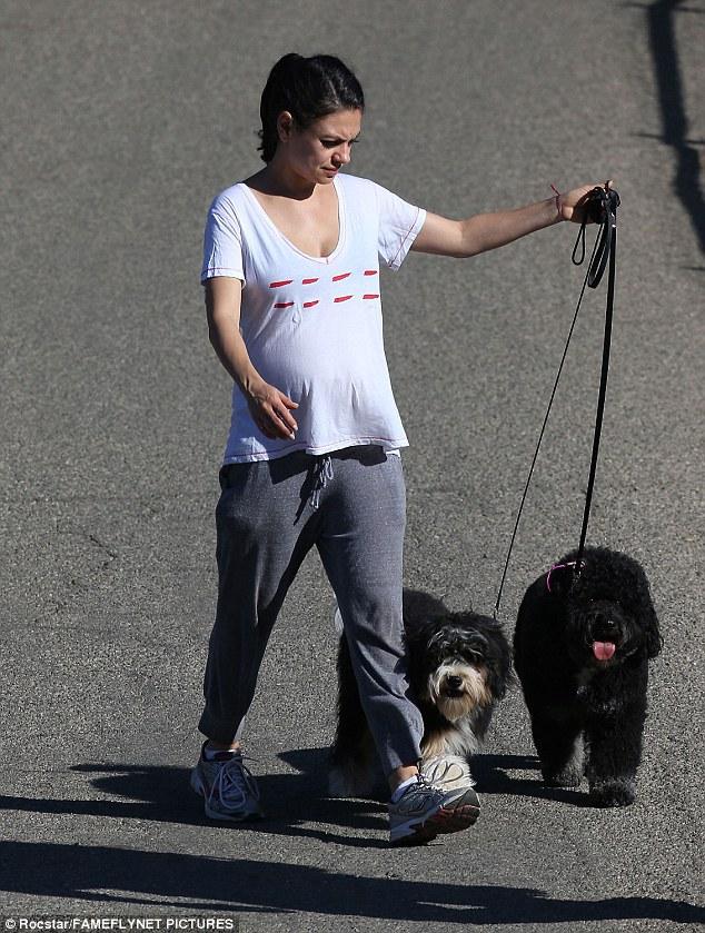 Mira a Mila Kunis embarazada, sin maquillaje y paseando a los perros