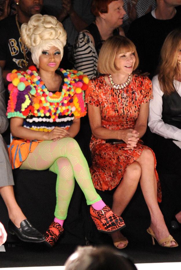 Nicki Minaj no tenía problemas para sentarse vestida así al lado de Anna Wintour.