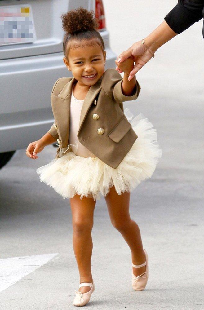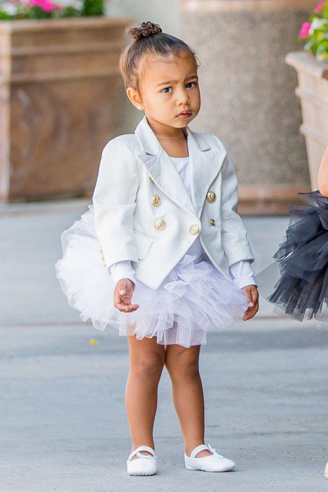 La hija de Kim, North West, aún no tiene tres años pero ya es toda una Kardashian, siempre anda a la moda (con ropa de marca, por supuesto) y, aunque no le gusta mucho sonreír, se nota que se divierte mucho. El pasado 2015 Kim Kardashian subió las fotos de los mejores trajes de la pequeña, donde se destaca mucho el uso de faldas de tutú.