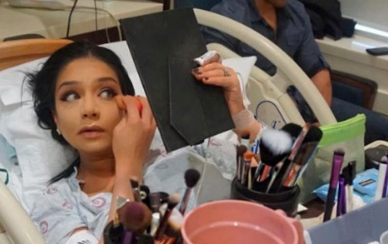 En una serie de fotos en Instagram se aprecia a Majid acostada en una cama de un hospital, mirándose en el espejo mientras se maquillaba.