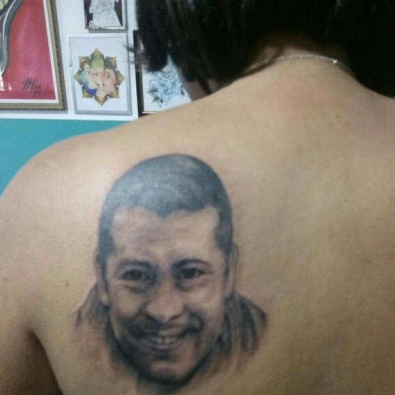 Mujer se tatúa el rostro de Leandro Martínez en su espalda