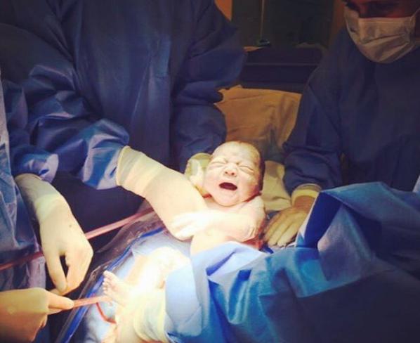 La rubia tiene todo un registro en redes sociales desde que salió de su casa hasta que el trabajo de parto finalizó.