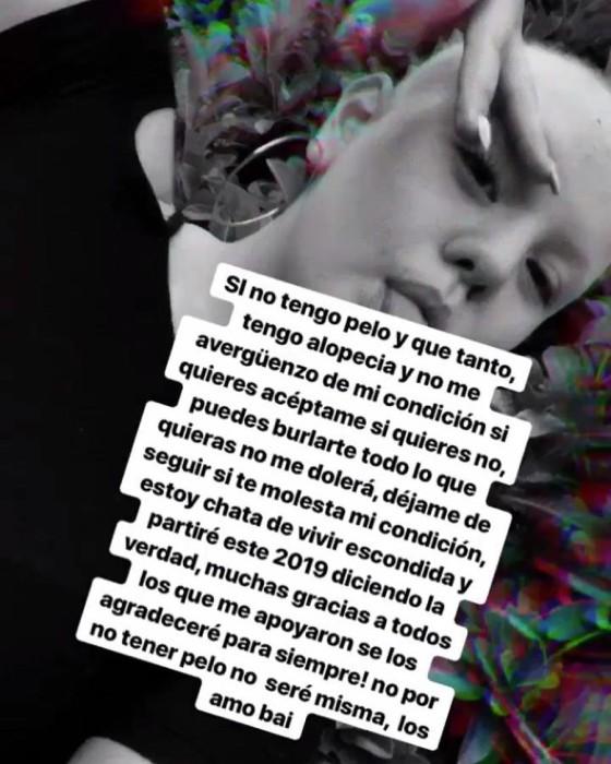 Nicole compartió una publicación que la menor hizo en redes sociales, al hueso, sobre su alopecia revelando así lo complejo que ha sido para la menor el proceso de asumirlo, lo que logró finalmente hacer.