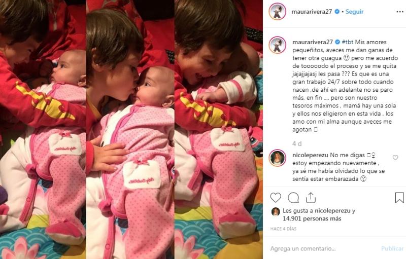“Mis amores pequeñitos, a veces me dan ganas de tener otra guagua pero me acuerdo de todo el proceso y se me quita”, escribió Maura.