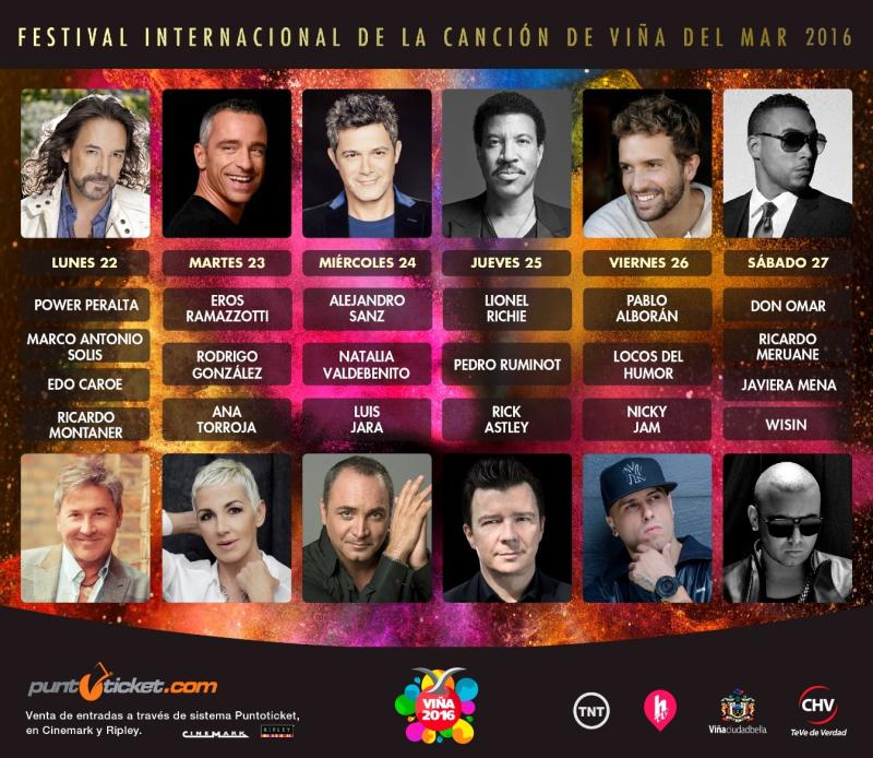 ¡No te pierdas la programación del Festival de Viña 2016!