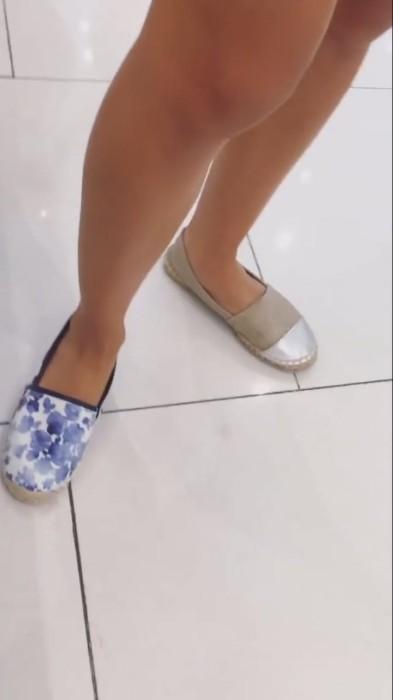 Pero una mujer no puede andar siempre arriba de los tacos, y por eso ella optó para andar más cómoda por usar unas alpargatas que además de cómodas, están a la moda.