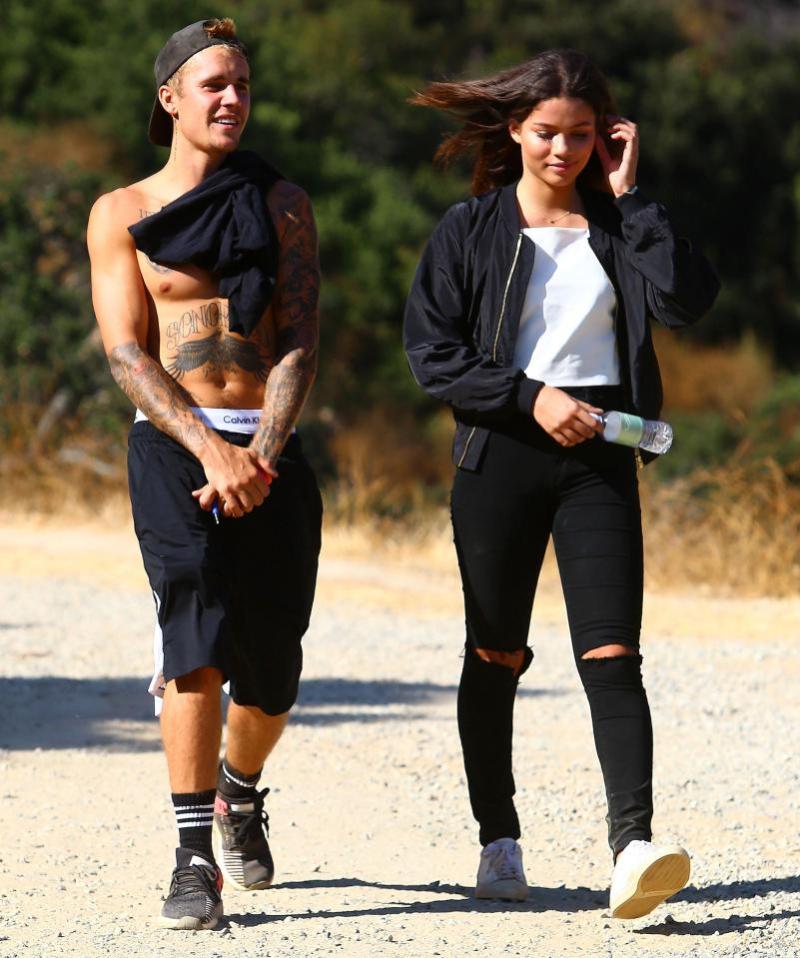 Los nuevos amigos fueron captados en el marco de una caminata al aire libre con Justin a torso desnudo.