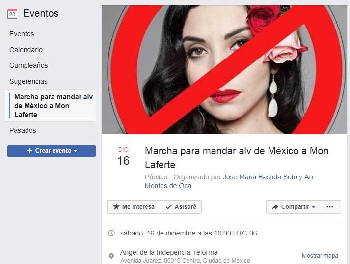 La respuesta no cayó para nada bien en el país que acoge a la cantante y de inmediato crearon un evento en Facebook llamando “Marcha para mandar alv de México a Mon Laferte”. La invitación ya tiene más de 16 mil asistentes y 60 mil interesados.