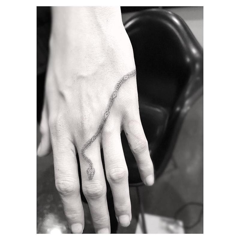 “Doctor Woo”, maestro en lo suyo, dio a conocer el diseño que recorre una de sus manos y que simboliza a una serpiente esquelética.
