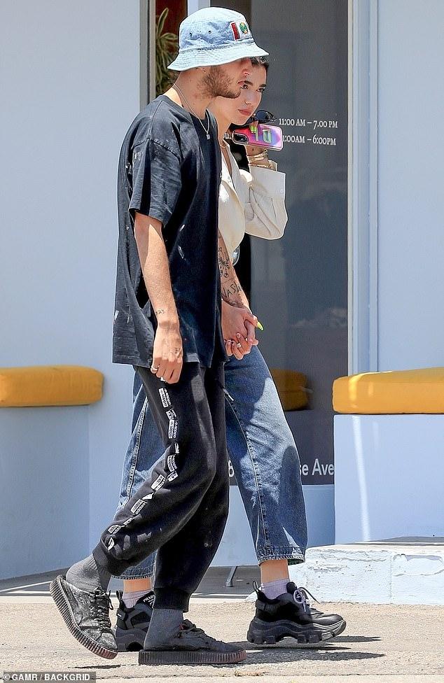 Así fueron captados por paparazzis en Los Angeles, caminando con looks urbanos y ella con sus zapatillas Prada modelo monster.