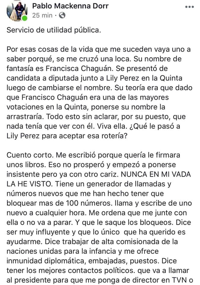En un extenso post a través de su cuenta de Facebook, el panelista de “Llegó tu Hora” relata que esa junta con la desconocida nunca se concretó y que por ello, esta lo contacta insistentemente.