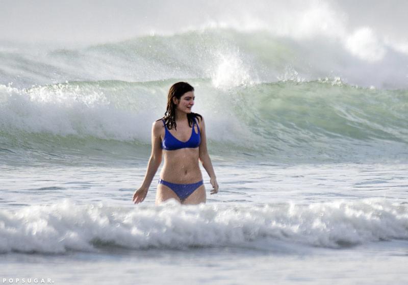 Y aunque el clima es bastante similar al de Chile y están en pleno otoño, la intérprete de "Royals" no quiso perderse de la playa, y fue a bañarse mientras acompañaba a surfear un viejo amigo, con el que fue fotografiada. Las imágenes fueron liberadas por el sitio Popsugar.