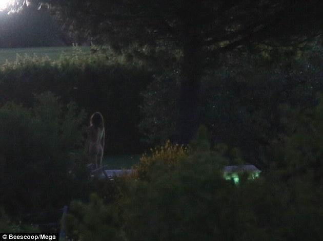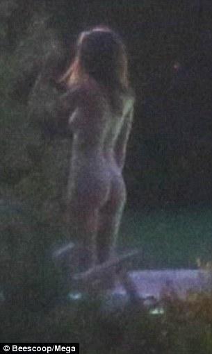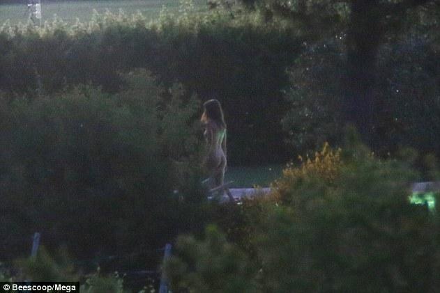 La modelo y actriz fue sorprendida en cueros al aire libre.