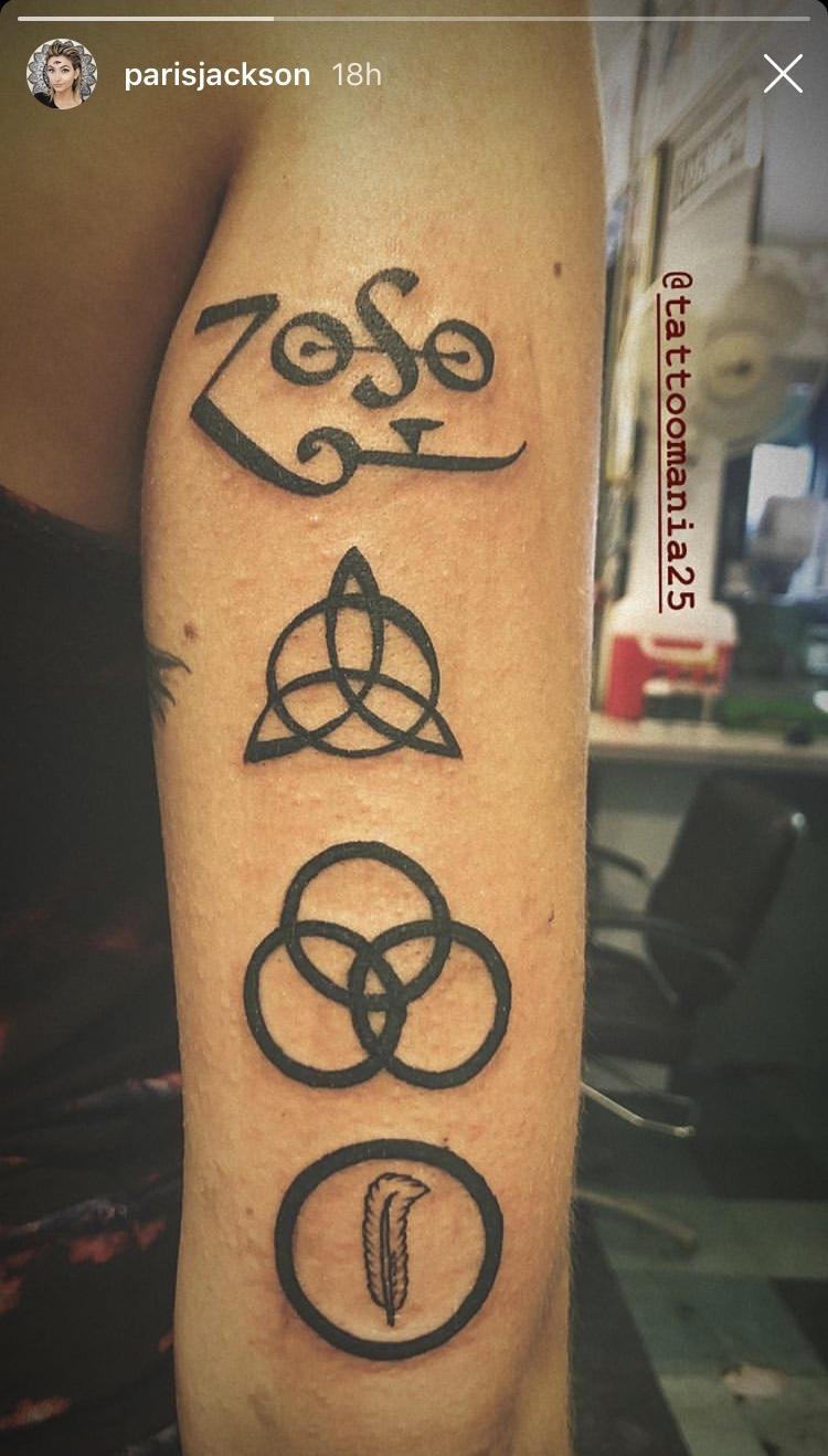 Paris Jackson sorprendió este martes a sus seguidores publicando una foto en su cuenta de Instagram y Twitter, de su nuevo tatuaje inspirado en el grupo británico Led Zeppelin.