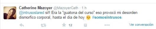 La intérprete quedó con una marca de por vida, como suele ocurrir con la mayoría de los niños que son víctimas de bullying. Su pasado lo quiso recordar en el programa Intrusos escribiendo en redes sociales mientras el espacio corría en vivo y su panel comentaba este tema.
