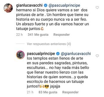 En un español perfecto Giancluca invitó a Pascual a tatuarse juntos, idea que dejó en los comentarios del modelo. “Hermano, si Dios quiere vamos a ser dos pinturas de arte. Un hombre que tiene su historia en su cuerpo, nunca va a ser feo. Un abrazo fuerte y un día vamos a hacer un tatuaje juntos", redactó el DJ.